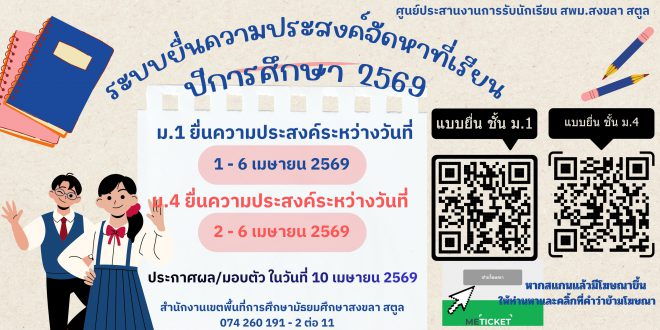 ยื่นความประสงค์จัดหาที่เรียน ปีการศึกษา 2569 ทวีป สันแก้ว 1 เมษายน, 2026 ข่าวประชาสัมพันธ์, ข่าวสาร 41 Views Share Facebook Twitter Google +